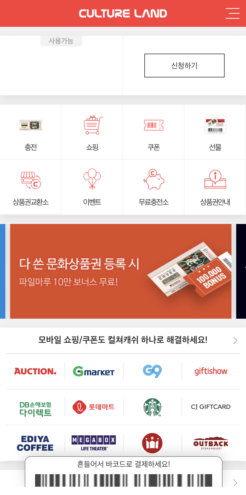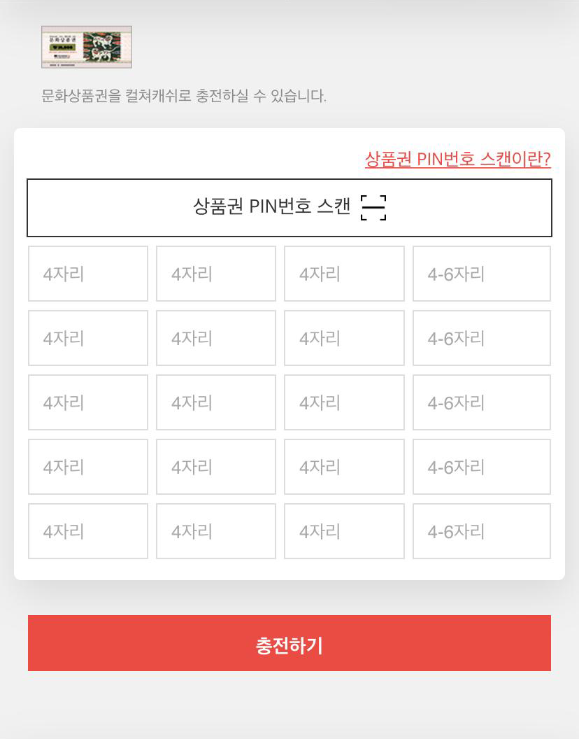 컬쳐랜드 홈페이지에서 구매한 상품권들을 등록합니다