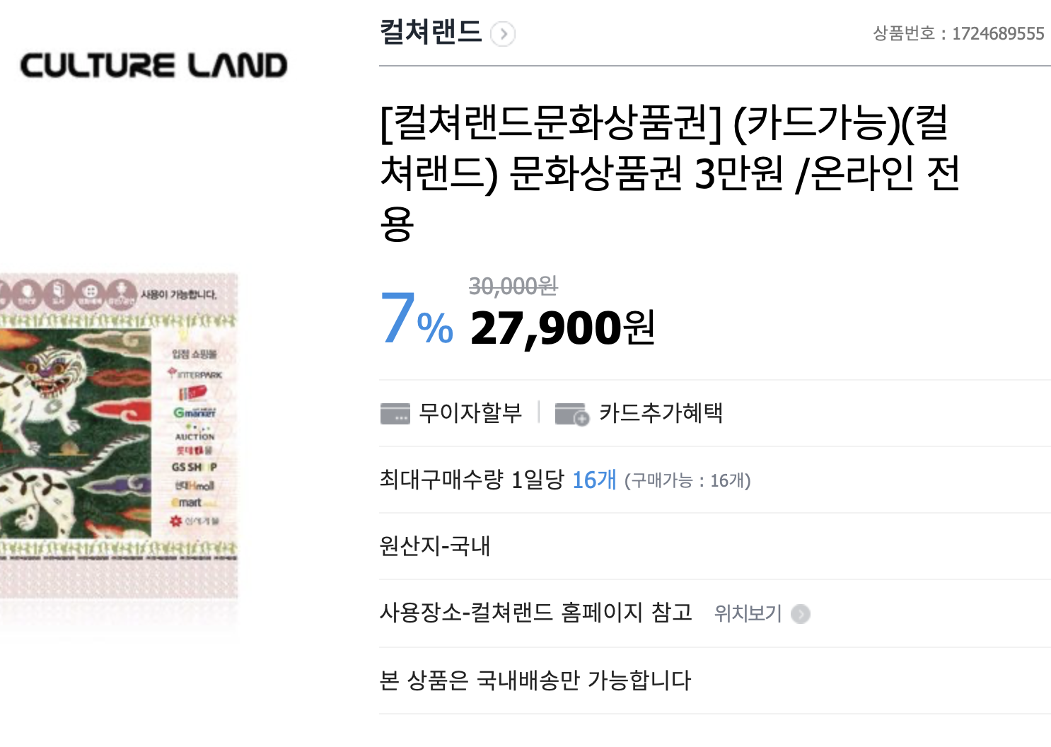 온라인 G마켓에서 문화 상품권을 구매합시다